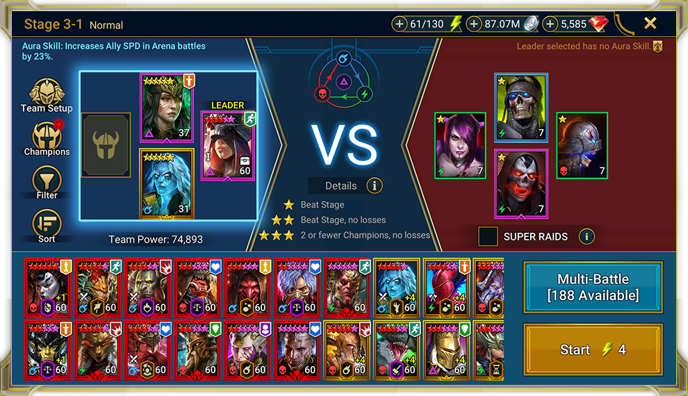 - In Dungeons und der Kampagne erhältst du pro Tag 30 Multi-Schlacht-Versuche gratis, kannst dir aber mit einer Raid-Karte mehr besorgen