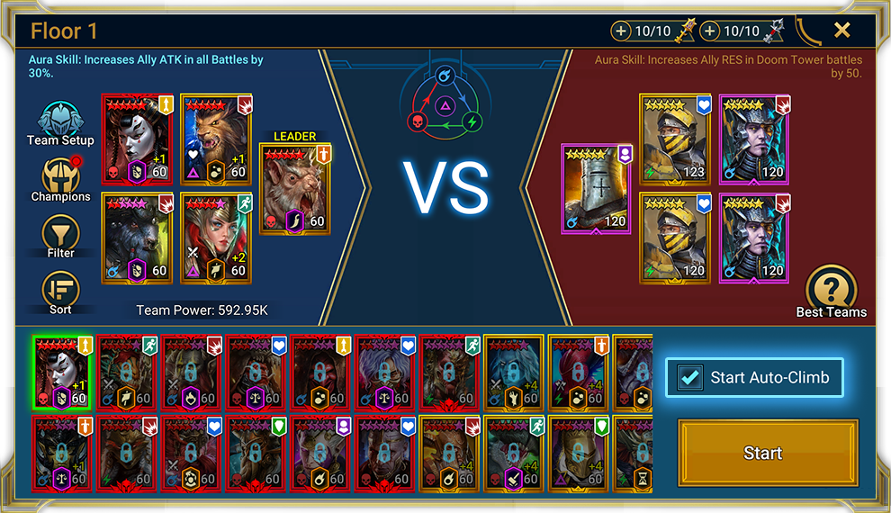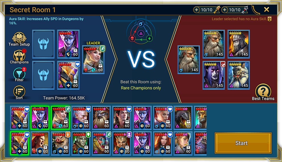 Потайные комнаты отличаются от других уровней башни тем, что вводят дополнительные условия. Например, тебе нужно будет использовать только редких героев или только героев из фракции Оборотни.